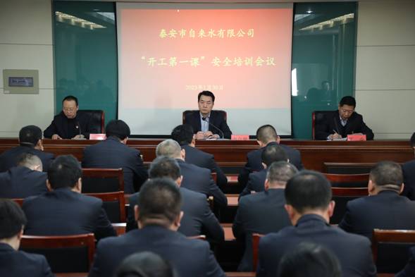 ?xxxx公司黨委副書(shū)記、總經(jīng)理丁合同志傳達(dá)了省政府安委會(huì)辦公室《關(guān)于扎實(shí)落實(shí)“開(kāi)工第一課”制度加強(qiáng)企業(yè)復(fù)工復(fù)產(chǎn)期間安全防范的通知》(魯安辦字〔2023〕1號(hào)),安全總監(jiān)劉偉同志主持會(huì)議并傳達(dá)《泰安市自來(lái)水有限公司“開(kāi)工第一課”實(shí)施方案》,安排部署公司全員“開(kāi)工第一課”培訓(xùn)活動(dòng)。