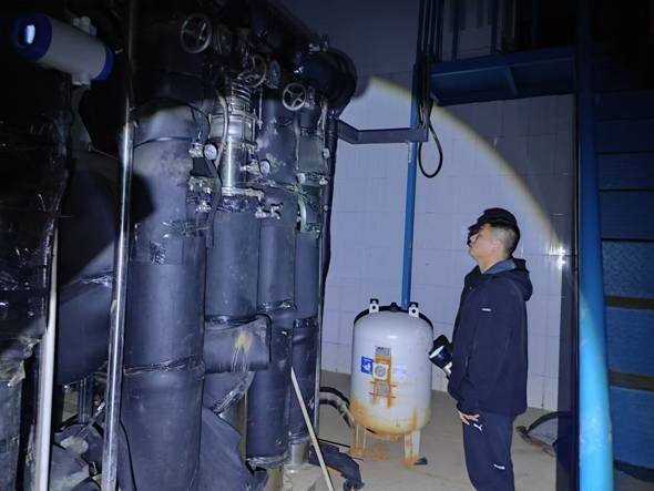 ? ?? ?? 抵達現(xiàn)場后,工作人員發(fā)現(xiàn)設備運行異常,當即嘗試重啟加壓設備進行補水,但經(jīng)過一段時間的觀察,壓力并未恢復正常。經(jīng)過進一步排查,工作人員懷疑是增壓站出水管道漏水導致,迅速將現(xiàn)場情況報告客服調(diào)度中心,管網(wǎng)管理中心工作人員趕赴現(xiàn)場進行支援。